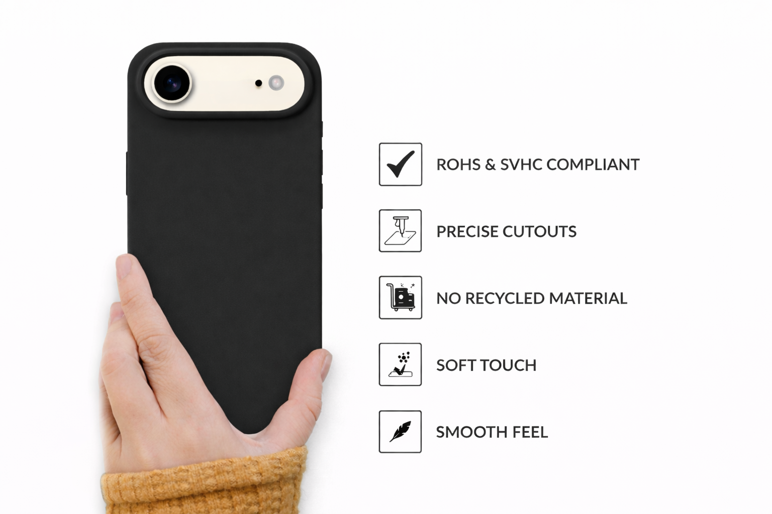 Flexible silicone + reinforced inner lining protects your phone from accidental drops, bumps, and scratches.